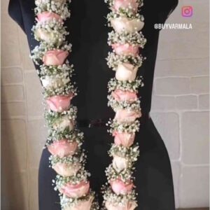 White & Pink Roses with Baby Breath Varmala