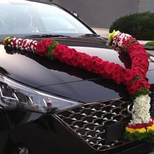 Red Roses with Chrysanthemum and Marigold Car Garland